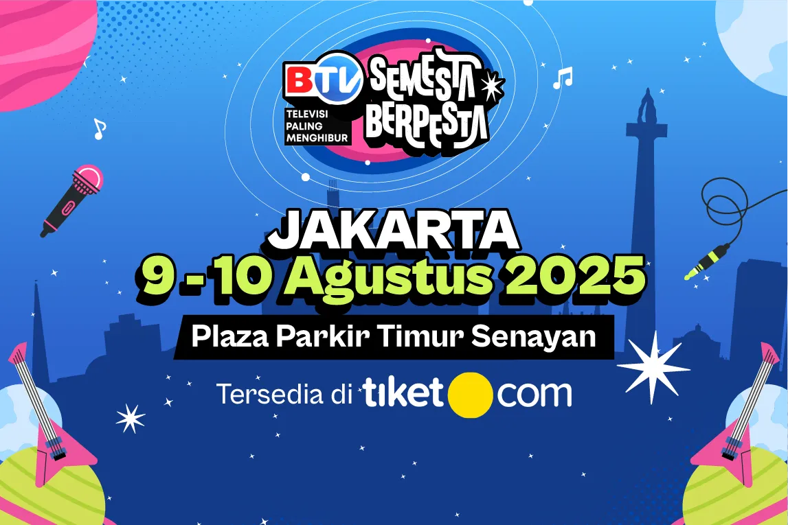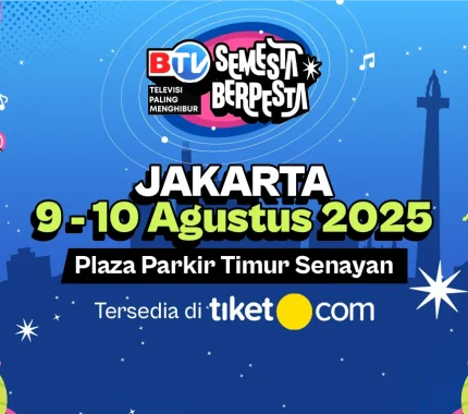 BTV Semesta Berpesta datang ke Jakarta pada 9-10 Agustus 2025! Acara akan berlangsung di Plaza Parkir Timur Senayan, menawarkan berbagai macam pengalaman yang gak boleh kamu lewatkan. Tiga pilar utama BTV Semesta Berpesta—musik, kuliner, dan fashion siap memberikan pengalaman terbaik untuk warga Jakarta. Berbagai macam aktivitas juga siap untuk memberikan hiburan akhir pekan! Acara akan dimeriahkan oleh musisi-musisi seperti Fajar Noor, Pasming Based, dan lainnya.