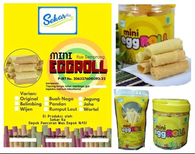 Eggroll: Eggroll beku biasanya berupa olahan daging ayam yang digulung dengan kulit telur dadar, kemudian dibekukan. Rasanya gurih dan renyah, cocok untuk camilan atau lauk praktis. Eggroll beku biasanya tinggal digoreng atau dipanggang hingga matang sebelum dikonsumsi.