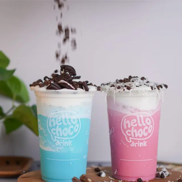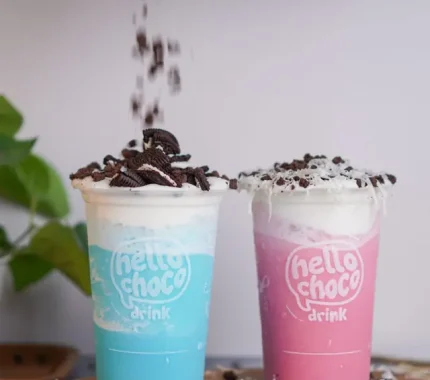 Hello choco drink adalah minuman kekinian yang terbuat dari. Coklat. Bubuk yang Diblander.Choco drink adalah minuman serbuk cokelat instan yang populer, seringkali dengan rasa cokelat Belgia yang kaya dan lezat. Minuman ini biasanya disajikan panas atau dingin, dan tersedia dalam kemasan sachet yang praktis. Beberapa varian juga menawarkan rasa cokelat Italia dan diperkaya dengan susu untuk memberikan sensasi creamy. Choco drink seringkali menjadi pilihan karena rasanya yang manis dan lezat, serta kemudahan penyajiannya