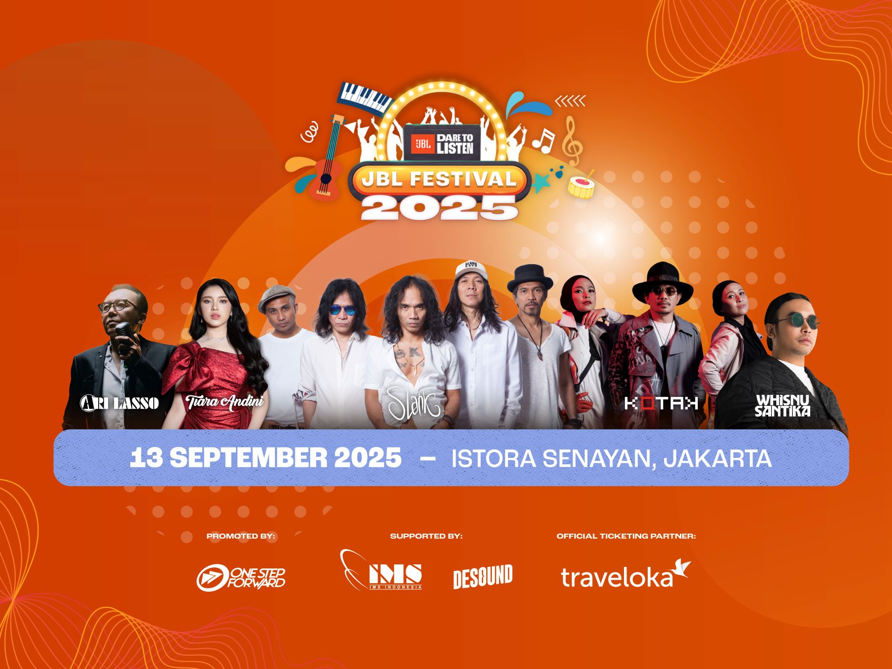 Digelar pada 13 September 2025 di Istora Senayan, JBL Festival 2025 bukan sekadar konser 💥 Visual yang memukau hingga kualitas suara yang menggelegar, semuanya dirancang untuk membuat pengalaman musik live kamu naik kelas. Jangan tunggu sampai kehabisan — amankan tiketmu sekarang dan bersiaplah bernyanyi dan merayakan musik bareng ribuan penonton lainnya!