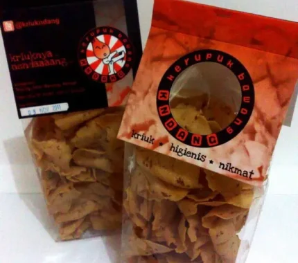 Kerupuk bawang adalah jenis kerupuk yang terbuat dari adonan tepung tapioka dan bawang putih, memberikan rasa gurih dan aroma bawang yang khas. Kerupuk ini biasanya berbentuk pipih dan tipis, dan digoreng hingga renyah. Rasanya gurih dengan dominasi rasa bawang yang kuat