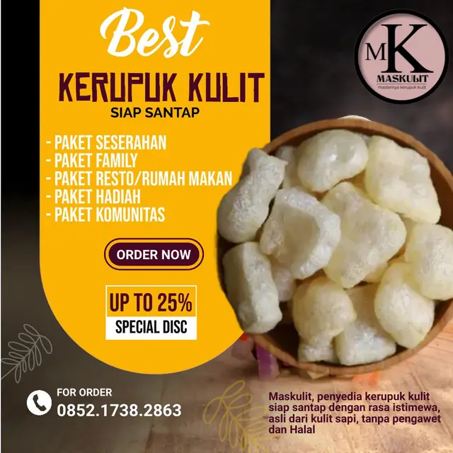 Kerupuk kulit Asli, gurihnya bikin lupa berhenti ngemil. Order sekarang lewat WA: 085217382863