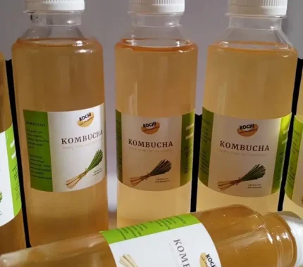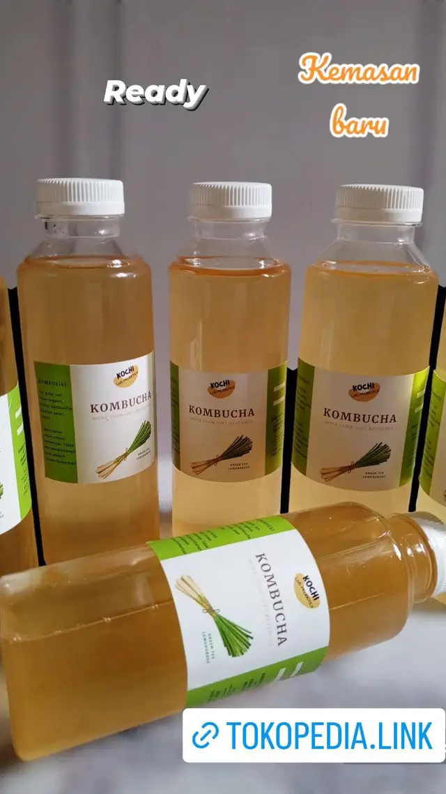 Kochi kombucha adalah minuman dari teh hijau/hitam yang difermentasi selama 10-14 hari. Hasil dari fermentasi akan menghasilkan kombucha dengan rasa asam, manis, dan bersoda. Kombucha sudah ada sejak ribuan tahun lalu di cina yang dikenal dengan banyak manfaat. Salah satunya bermanfaat untuk melancarkan pencernaan. Kombucha yang kami buat dikombinasikan dengan sereh agar aromanya lebih harum dan dapat diterima oleh semua kalangan