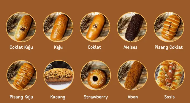 Aneka roti manis.Roti manis adalah jenis roti yang memiliki rasa manis yang menonjol, bertekstur empuk, dan biasanya ditambahkan berbagai isian atau topping manis. Roti manis berbeda dengan roti tawar karena kandungan gulanya yang lebih tinggi, yang memberikan rasa manis yang lebih kuat