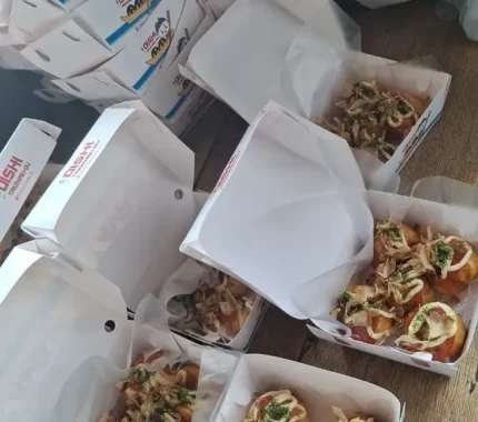 Takoyaki adalah makanan ringan khas Jepang berbentuk bola yang terbuat dari adonan tepung dan diisi dengan potongan gurita, kemudian dimasak dalam cetakan khusus. Makanan ini biasanya disajikan dengan saus takoyaki, mayones, katsuobushi (serutan ikan cakalang kering), dan rumput laut kering