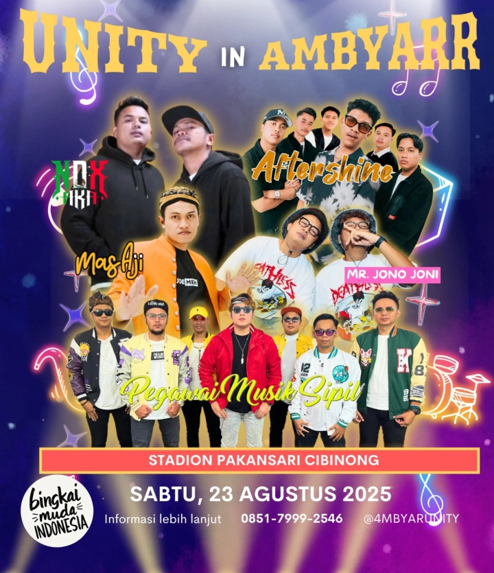 Festival musik UNITY IN AMBYAR akan digelar di Stadion Pakansari, Cibinong, Bogor, pada Sabtu, 23 Agustus 2025.